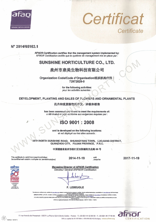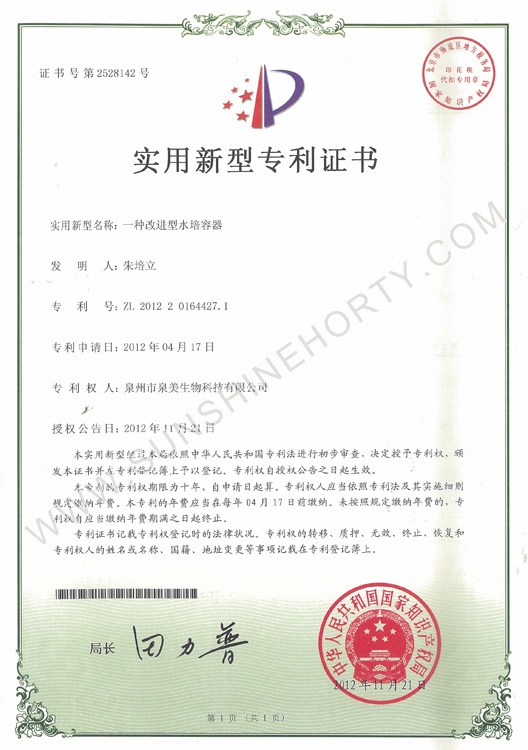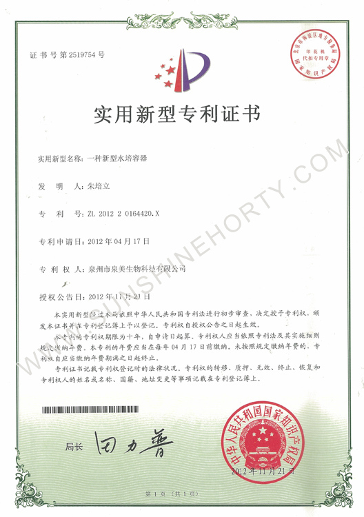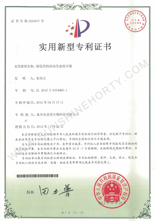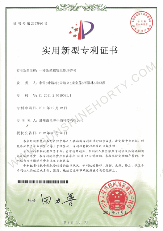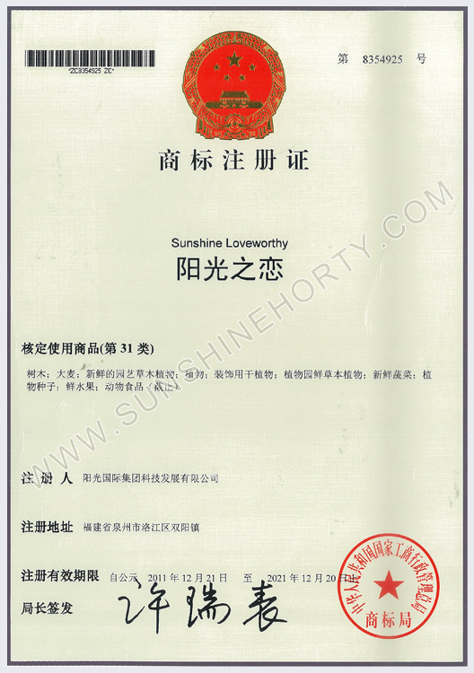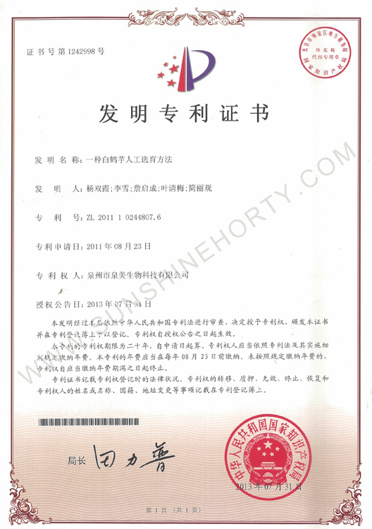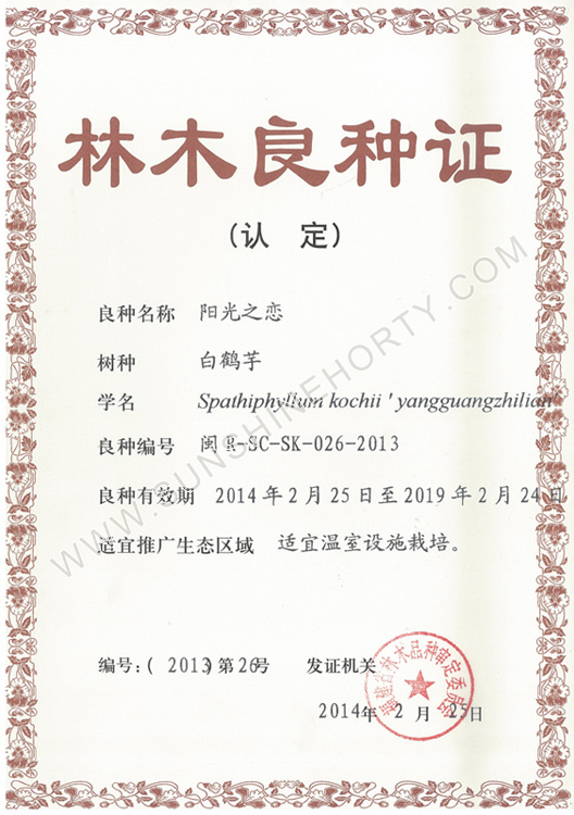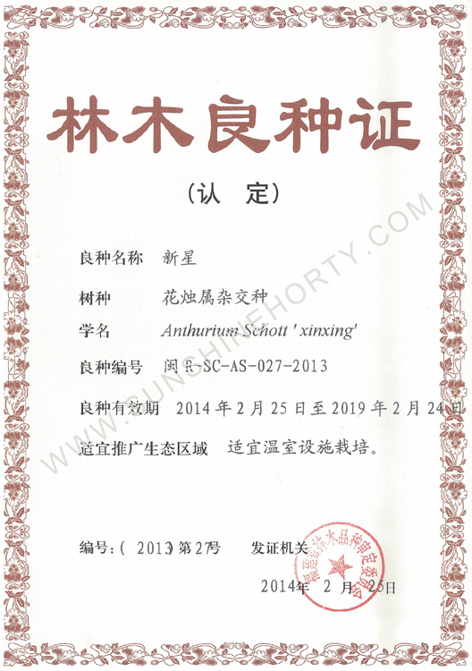 公司先后申报了20多项专利,获准专利15个,通过新品种省级认定4个。自主选育的新品种“新星”红掌、“红心”红掌获农业部新品种权保护;“阳光之梦”,“阳光之恋”,“阳光之星”系列白掌新品种获产品商标保护。公司对自主知识产权进行了有效保护。
