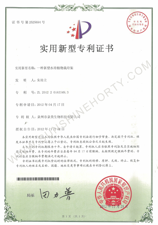 实用新型专利证书