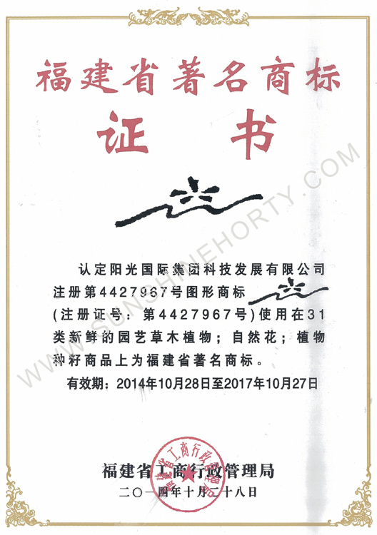 福建省著名商标证书