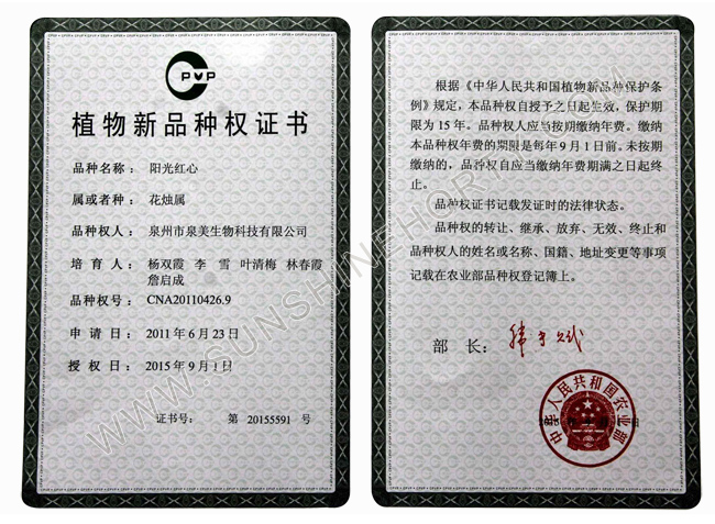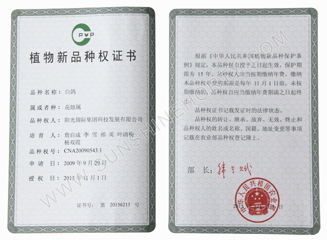 植物新品种权证书